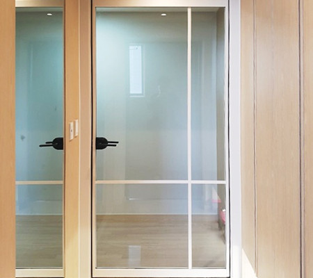 강남 대치동 아파트의 품격을 높인 평택 인테리어: 슬림 비대칭 양개 양방향 현관중문 시공 사..